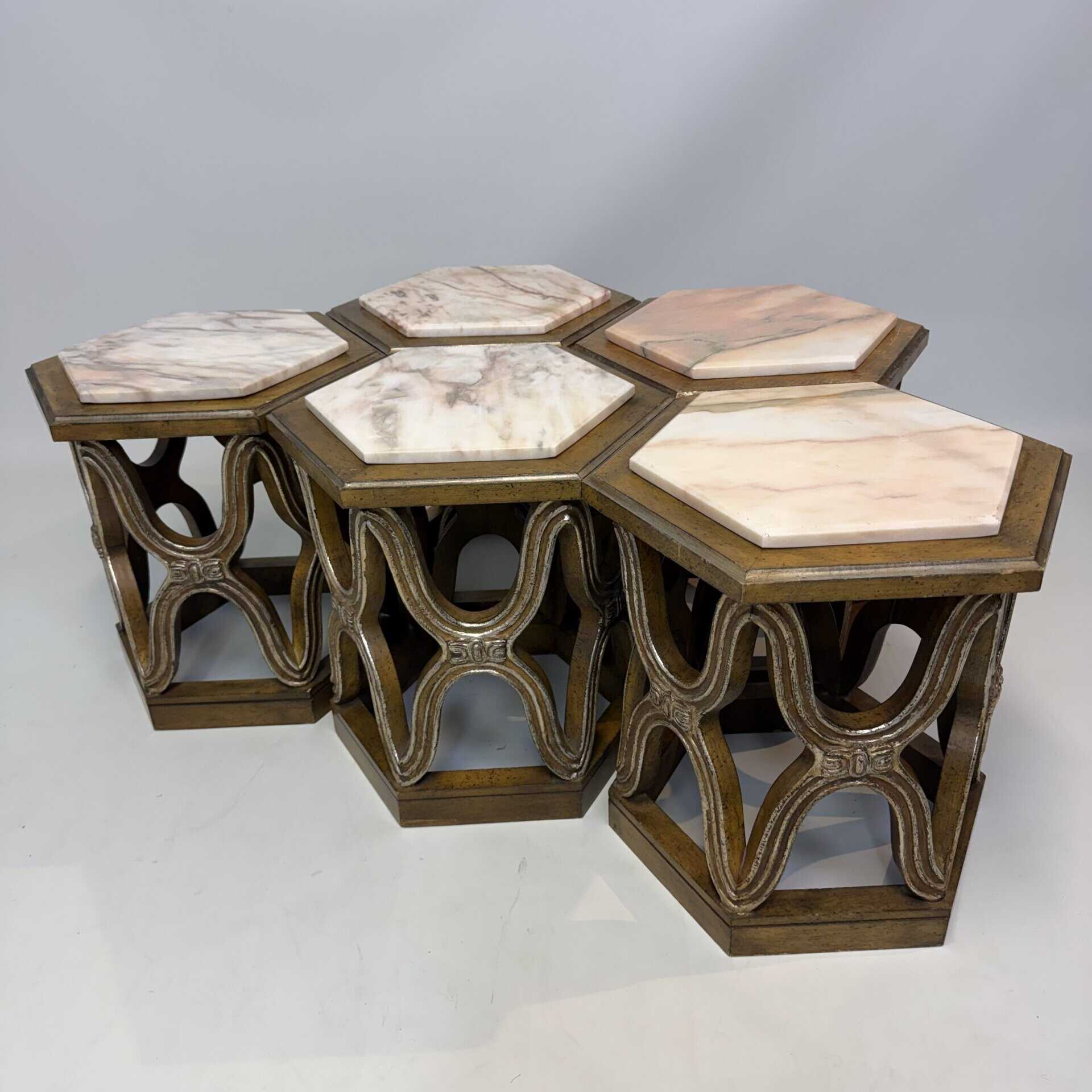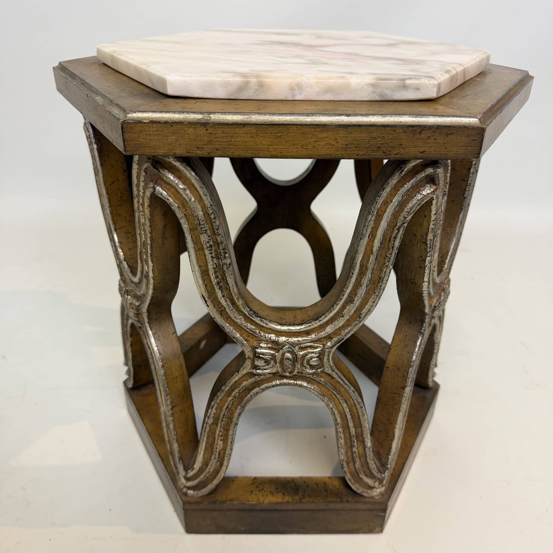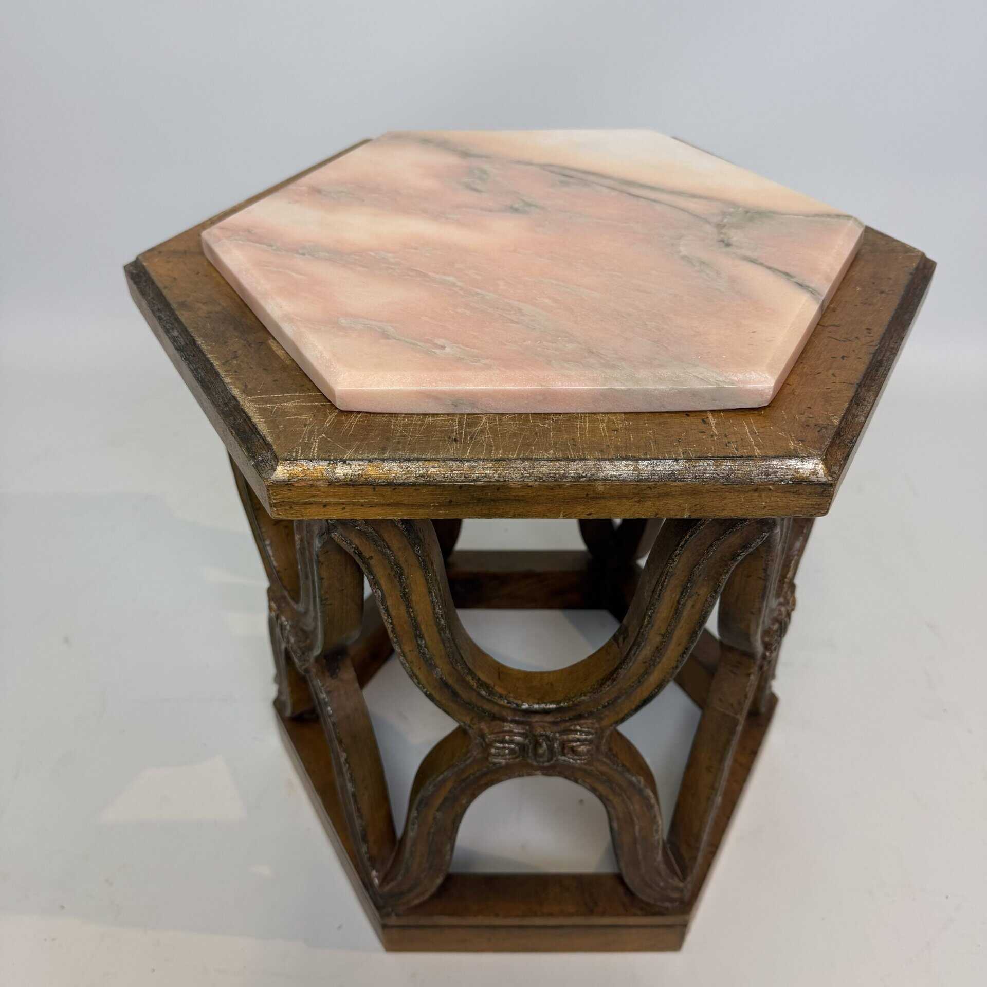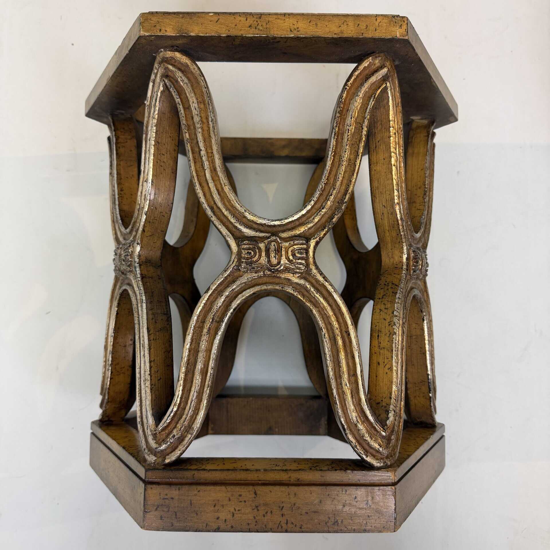 Carved giltwood side tables with marble top