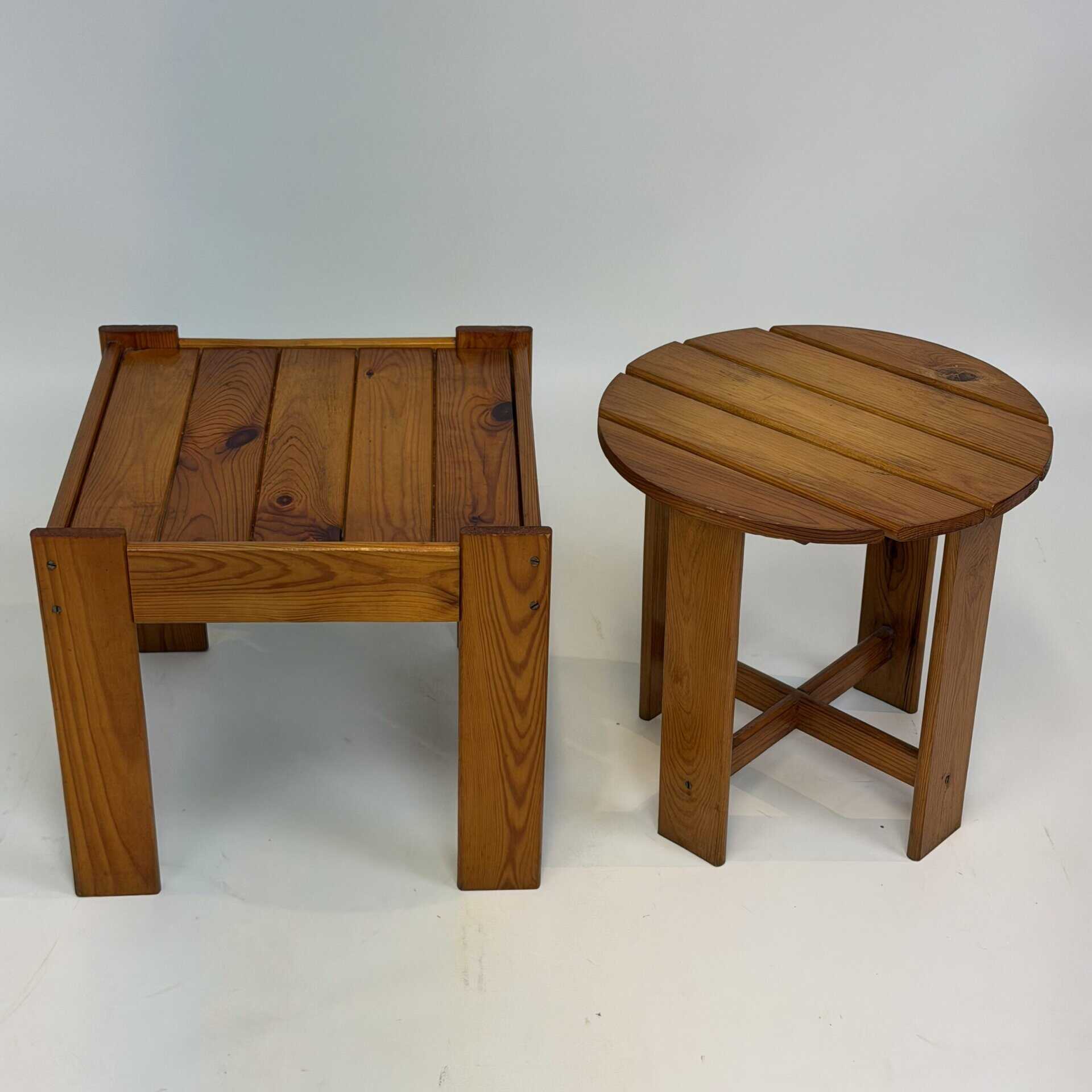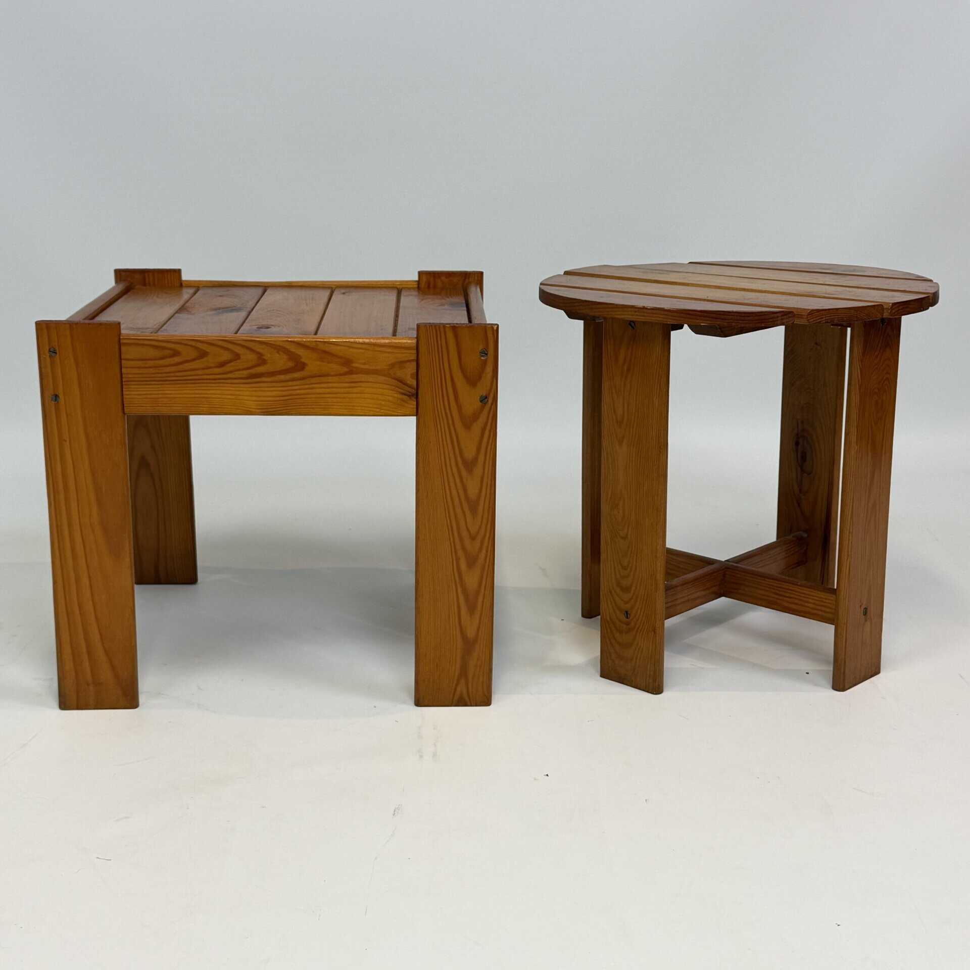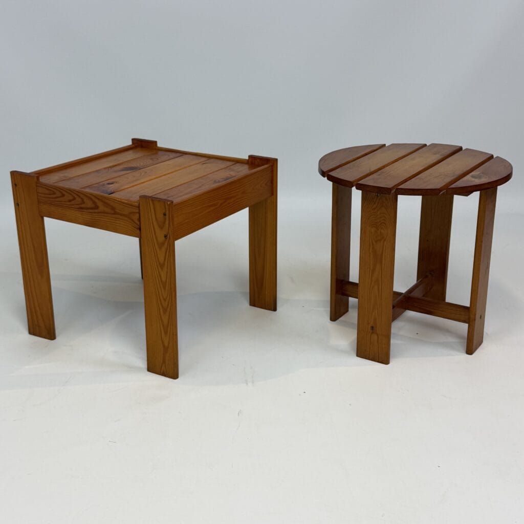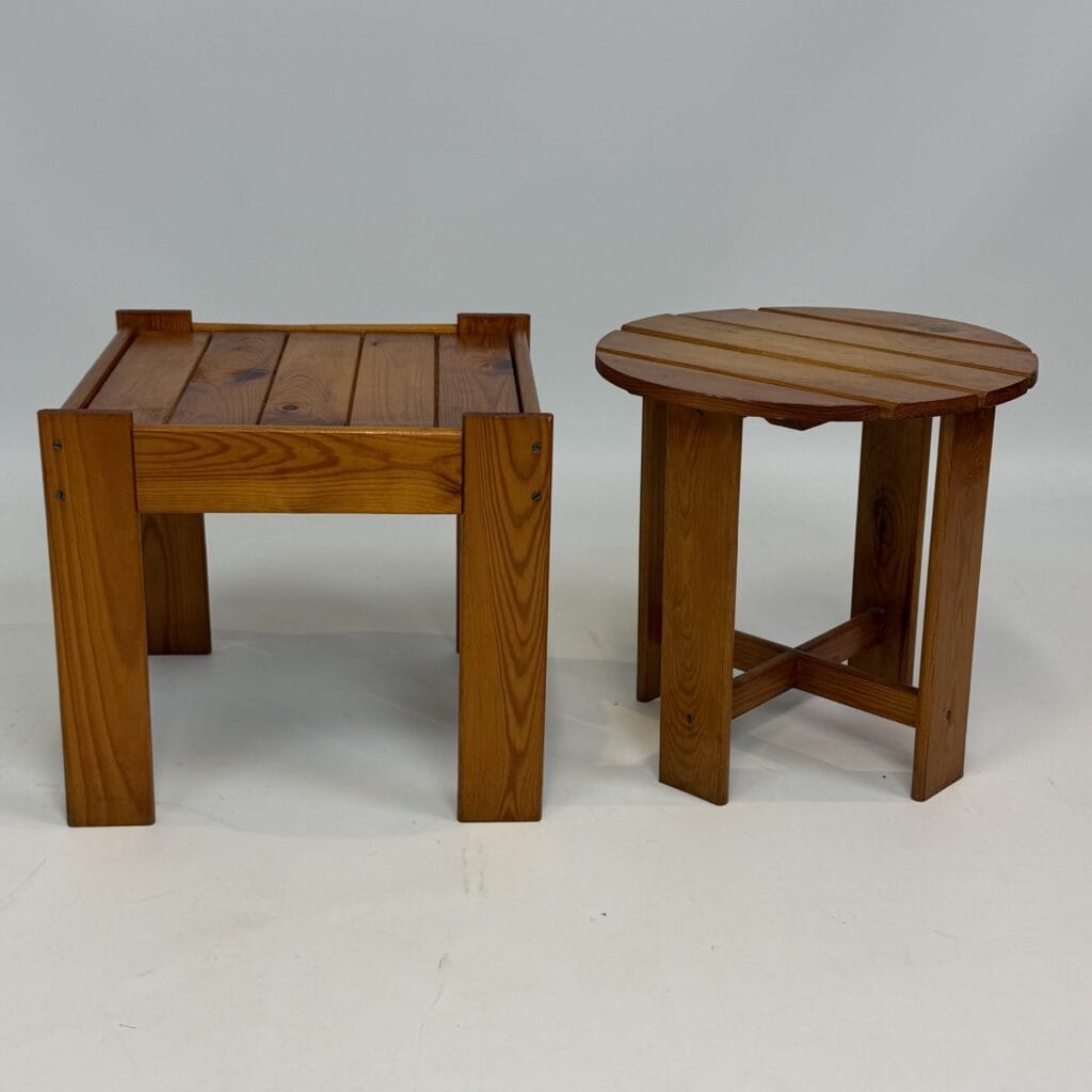 2  mid-century modern side tables/stools in solid pine wood