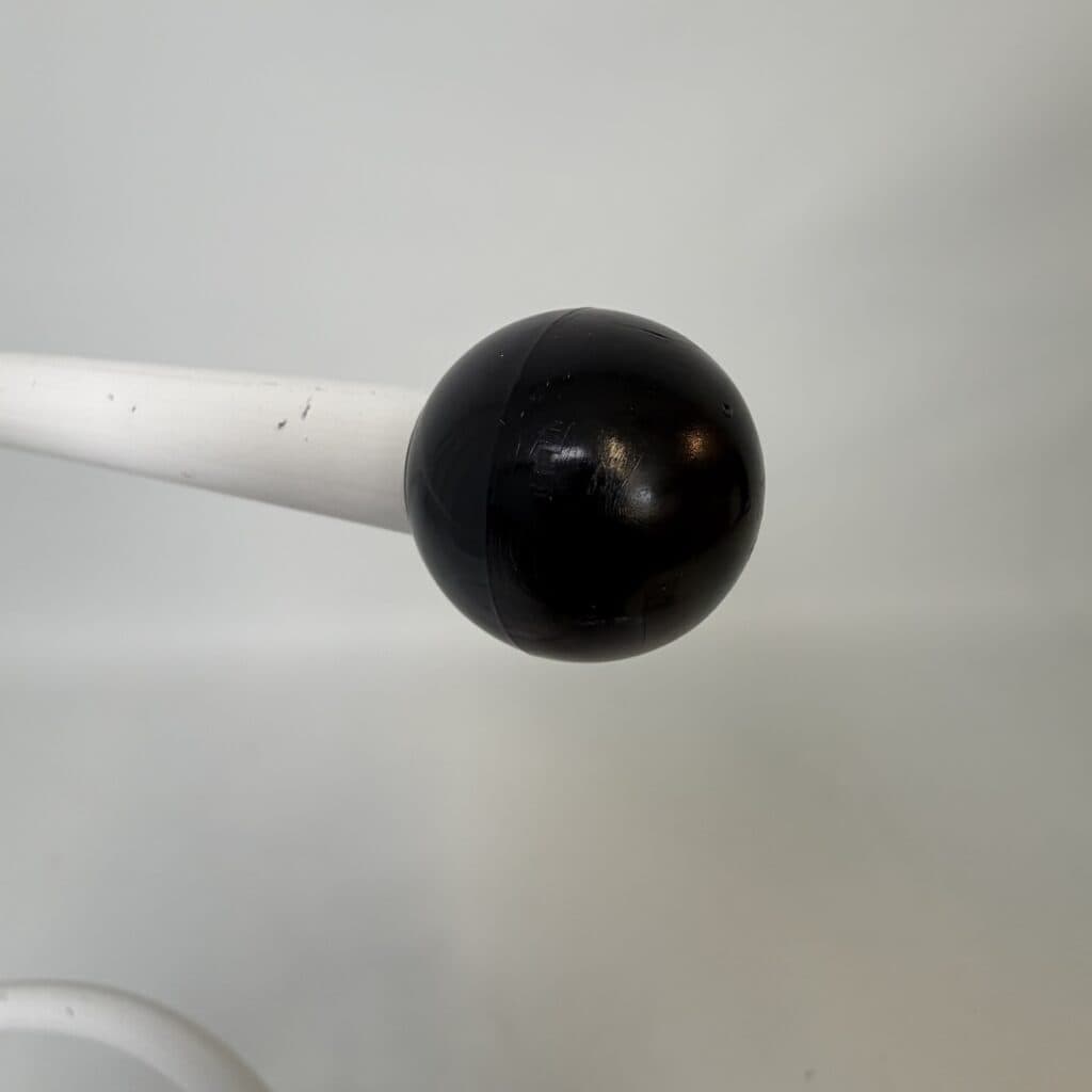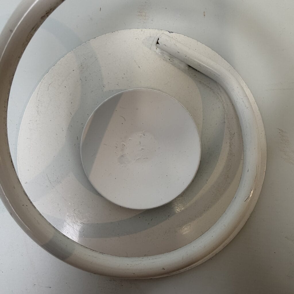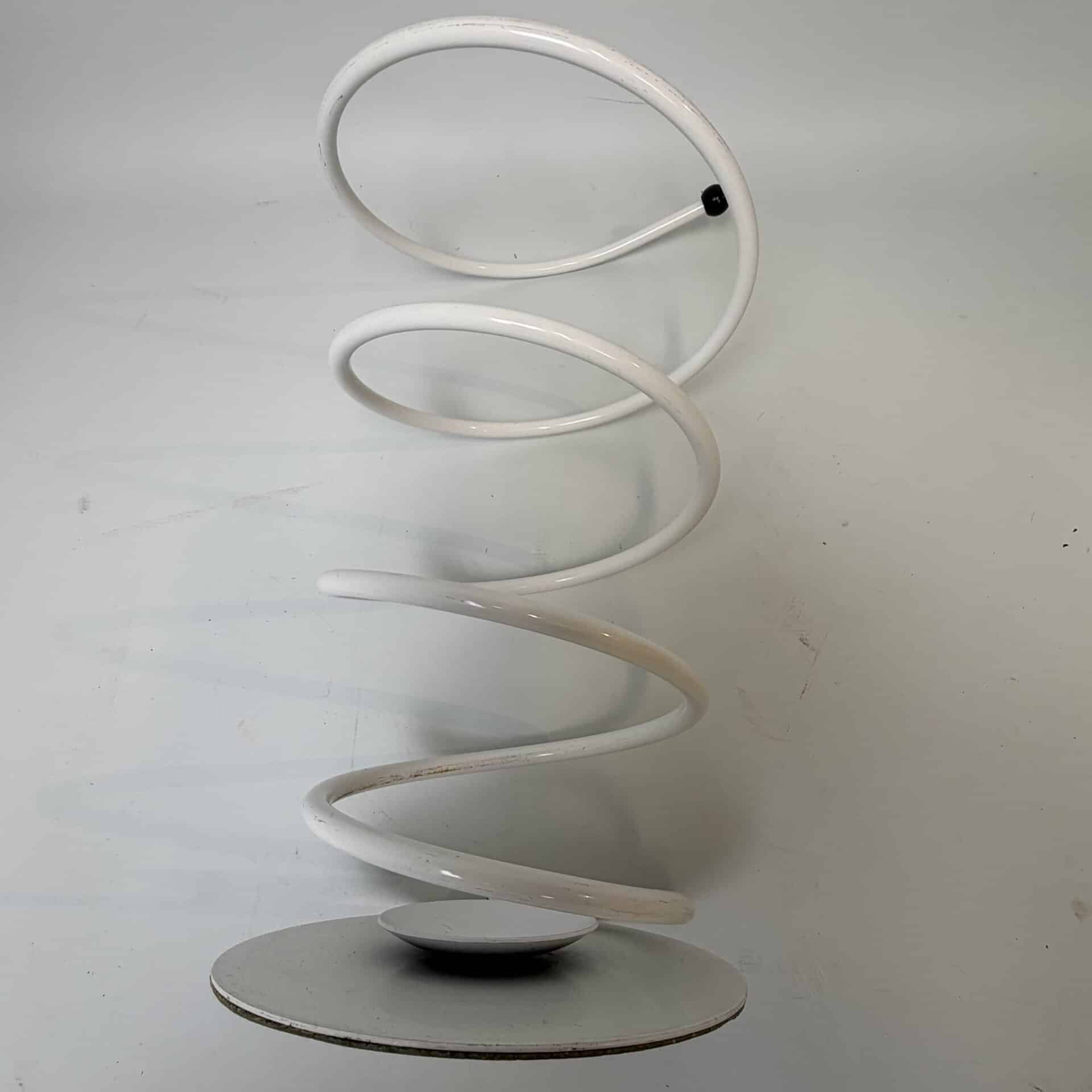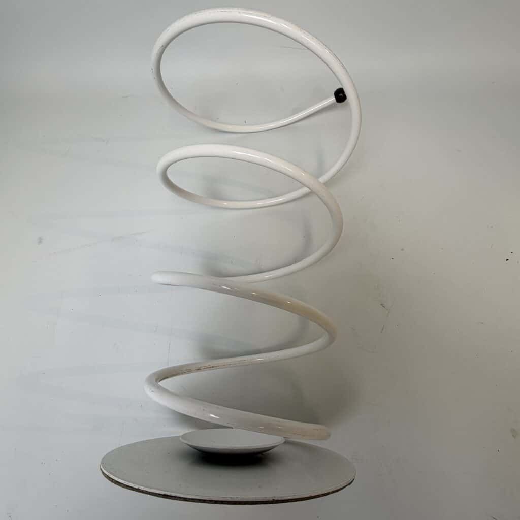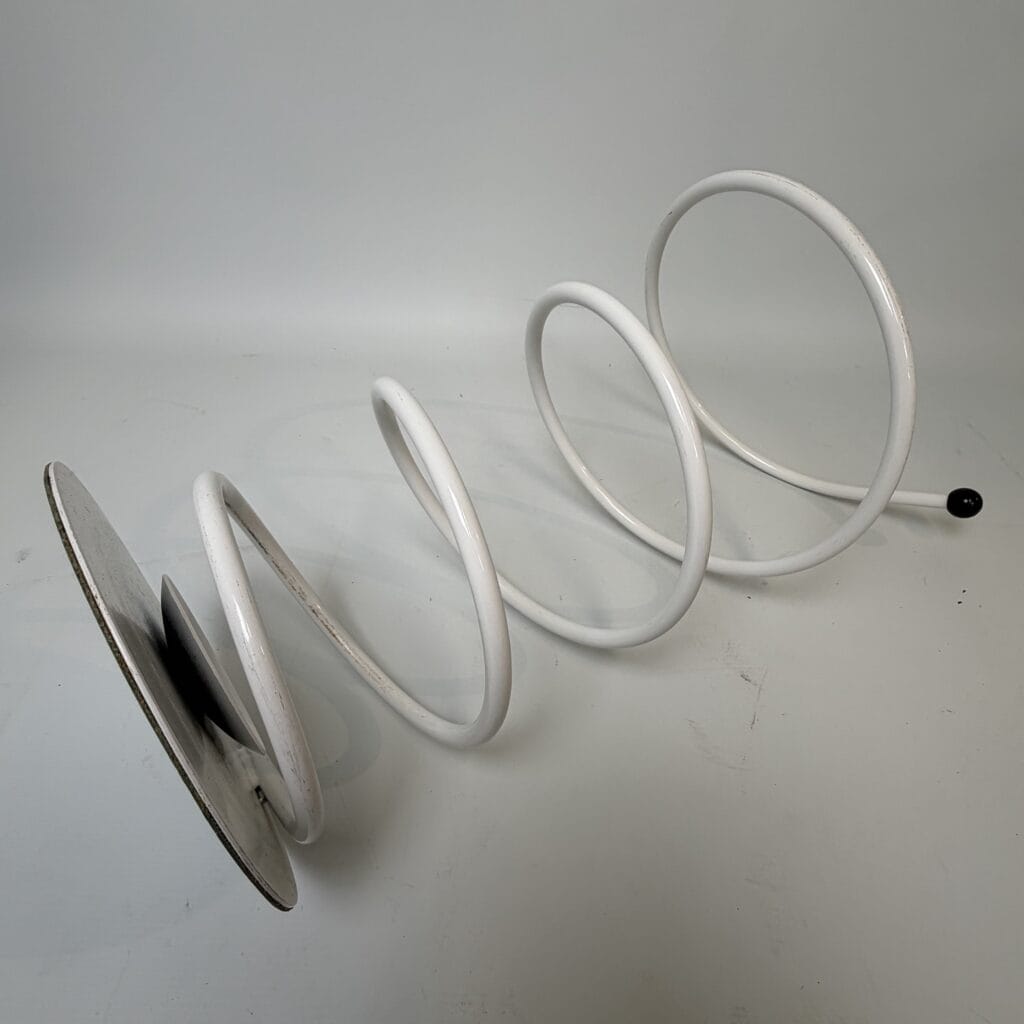 Pop Art umbrella stand in white lacquered metal with a black wooden ball at the end of the spiral