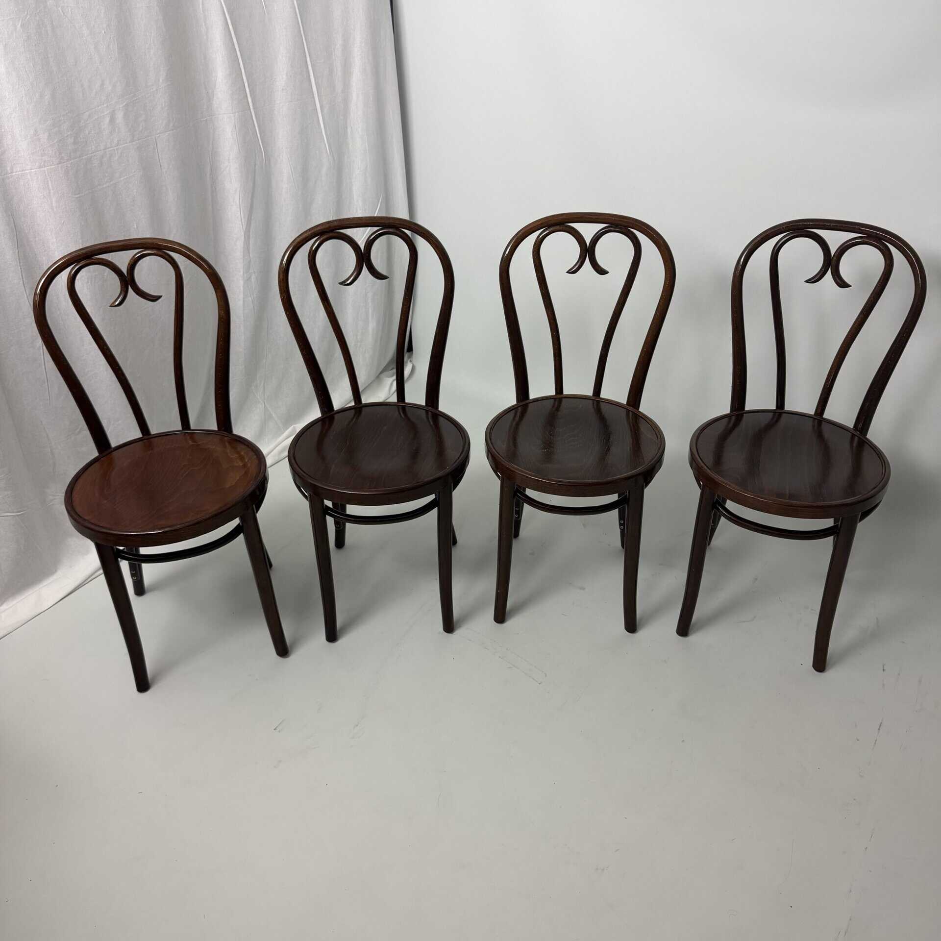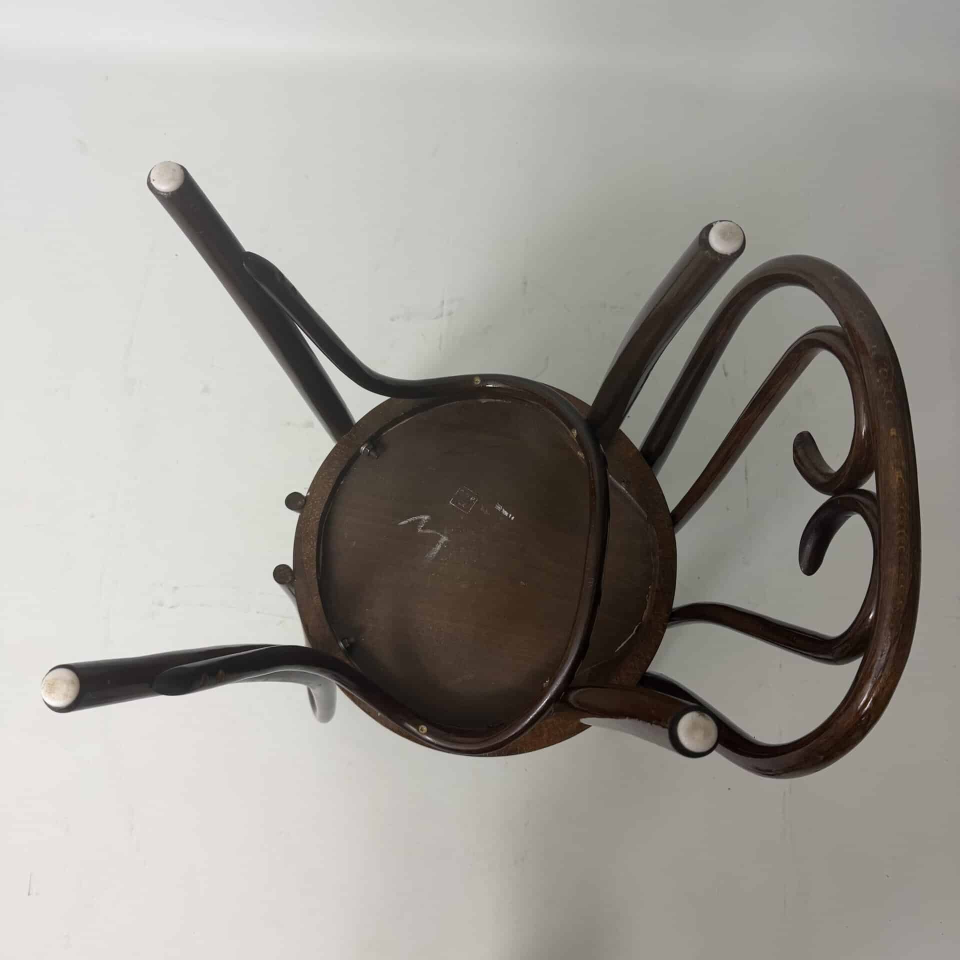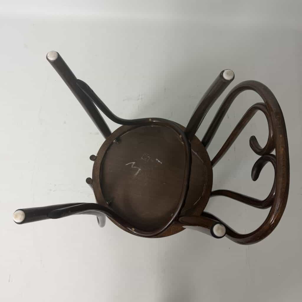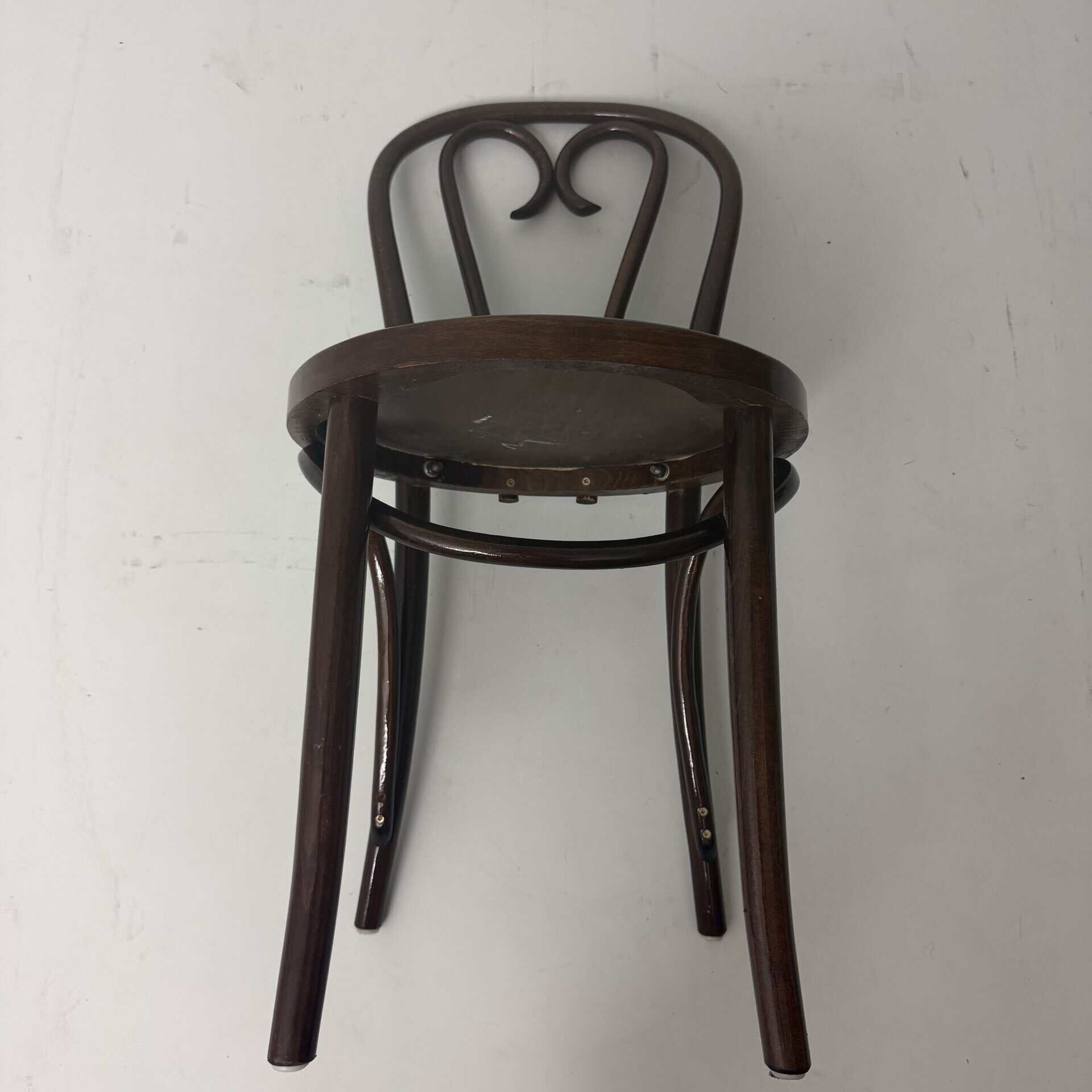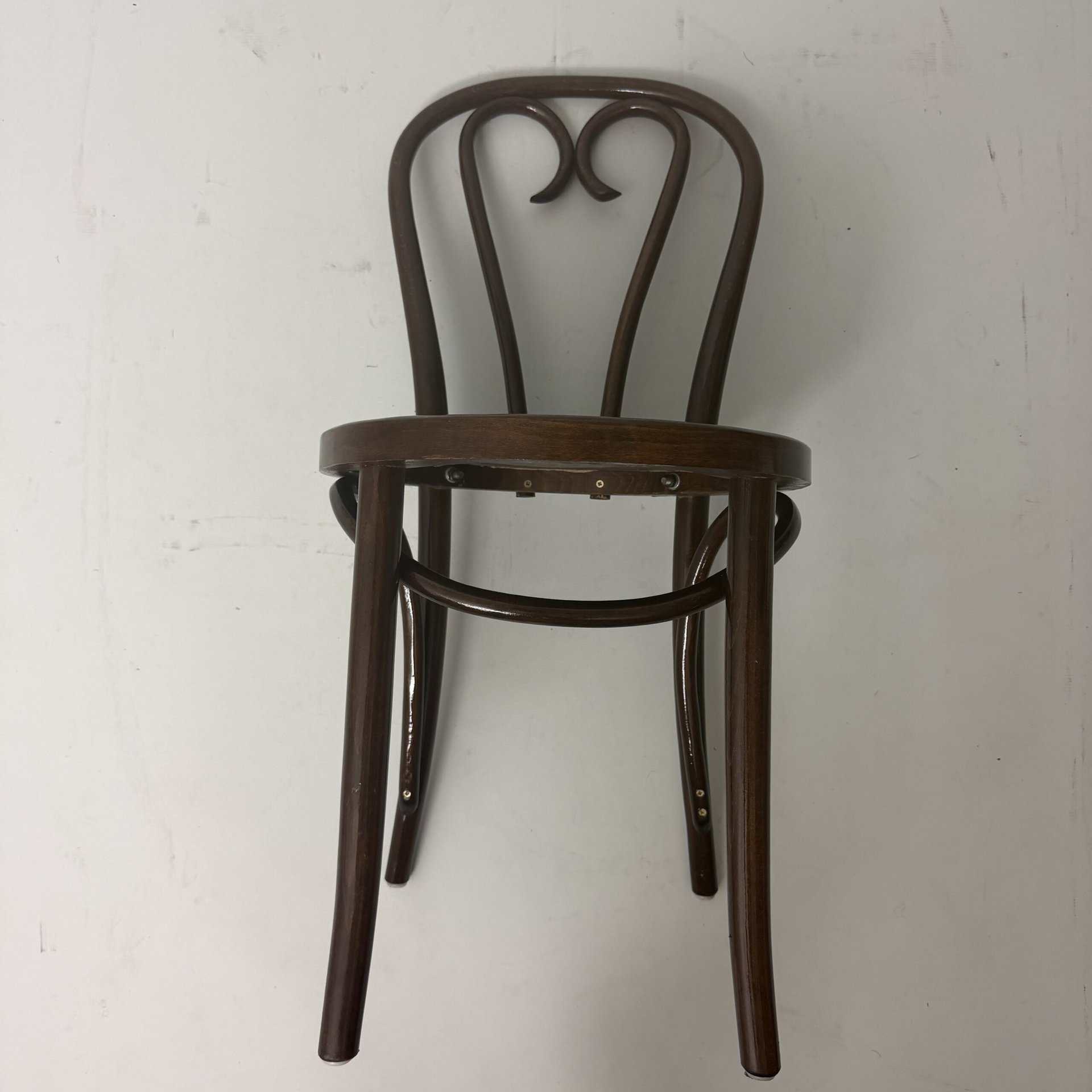 These bistro chairs in Jugendstil are made out of steam-bent beechwood, a traditional method used for lightweight but sturdy seating with a dark stained wood finish