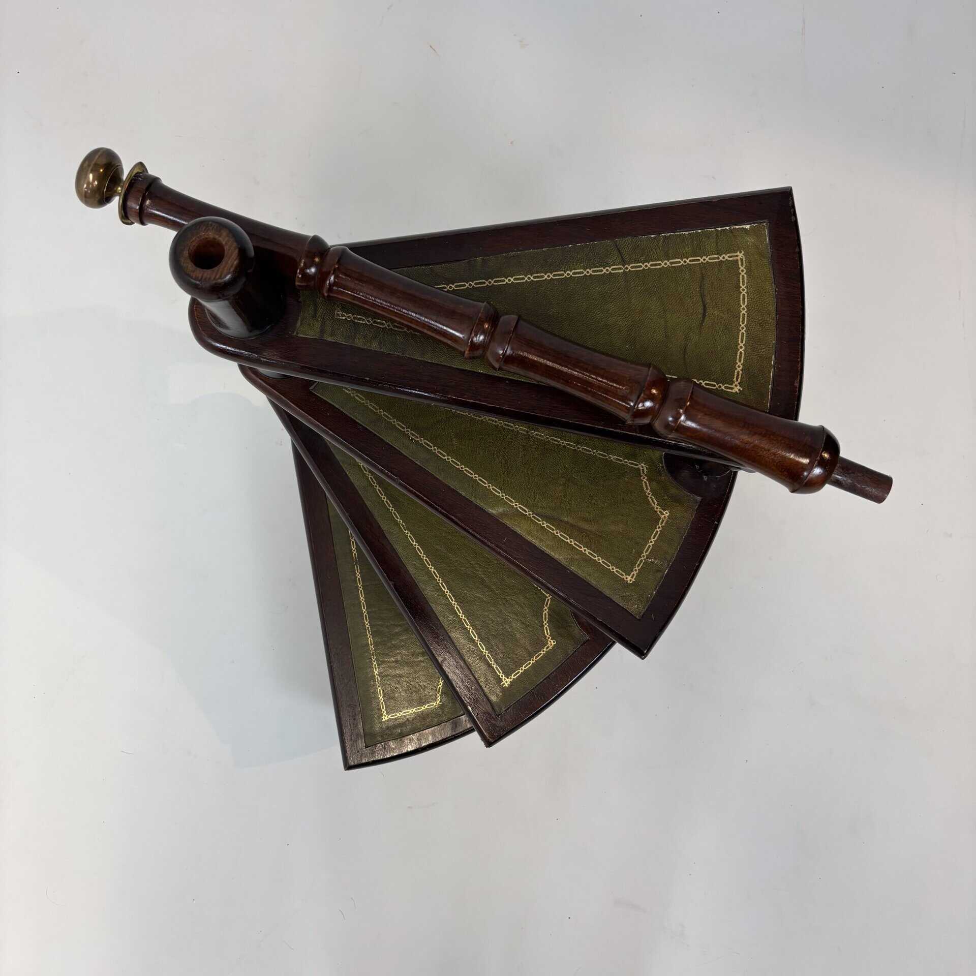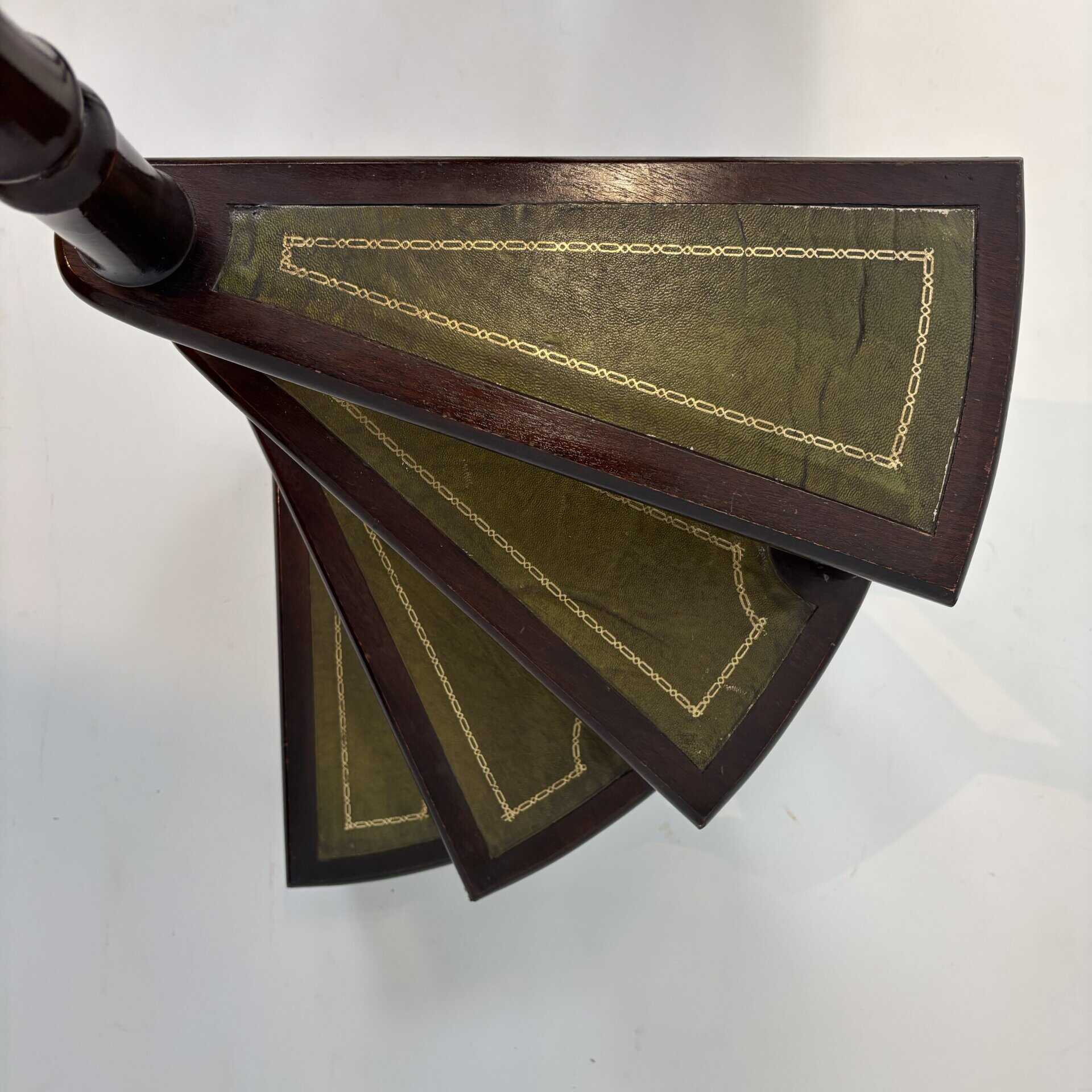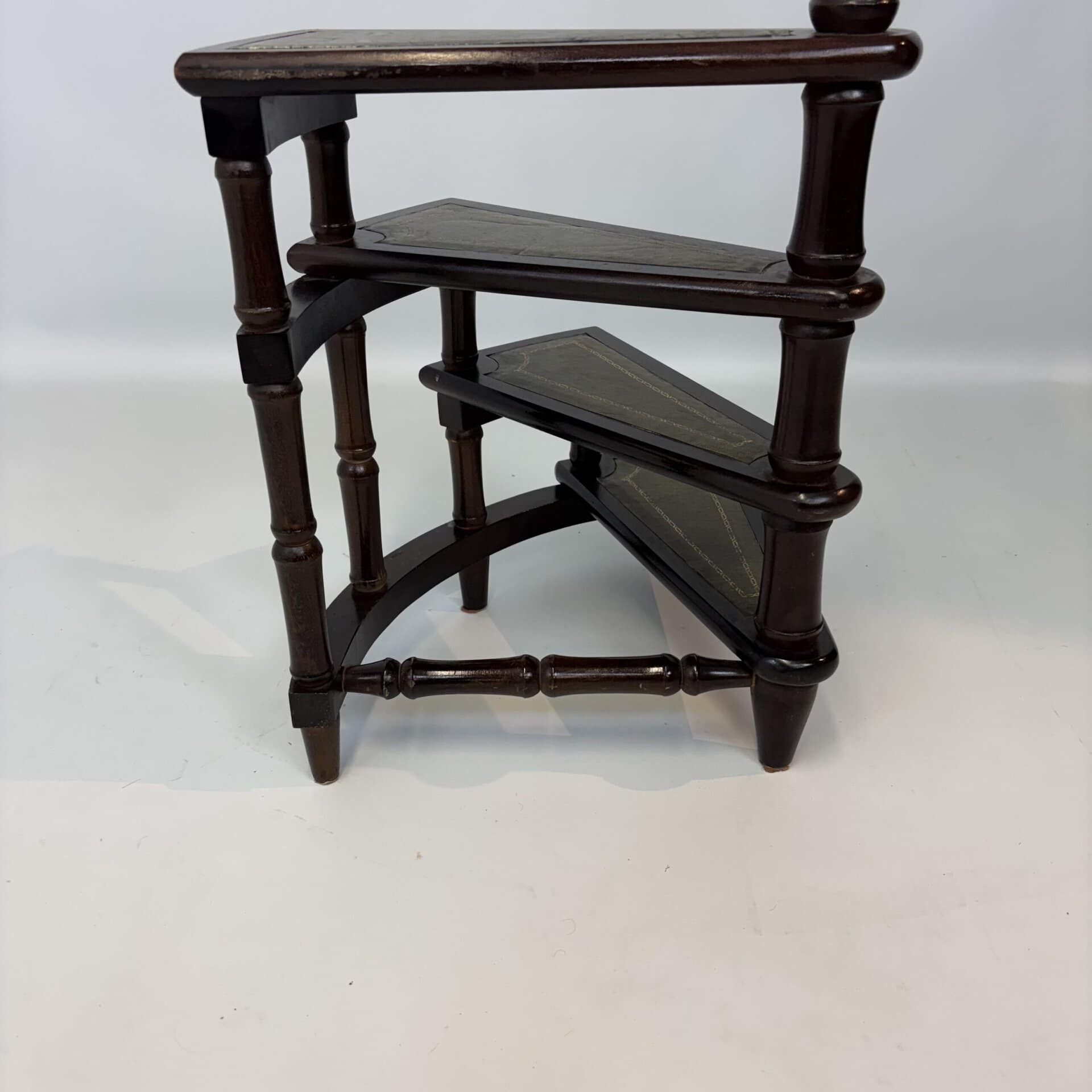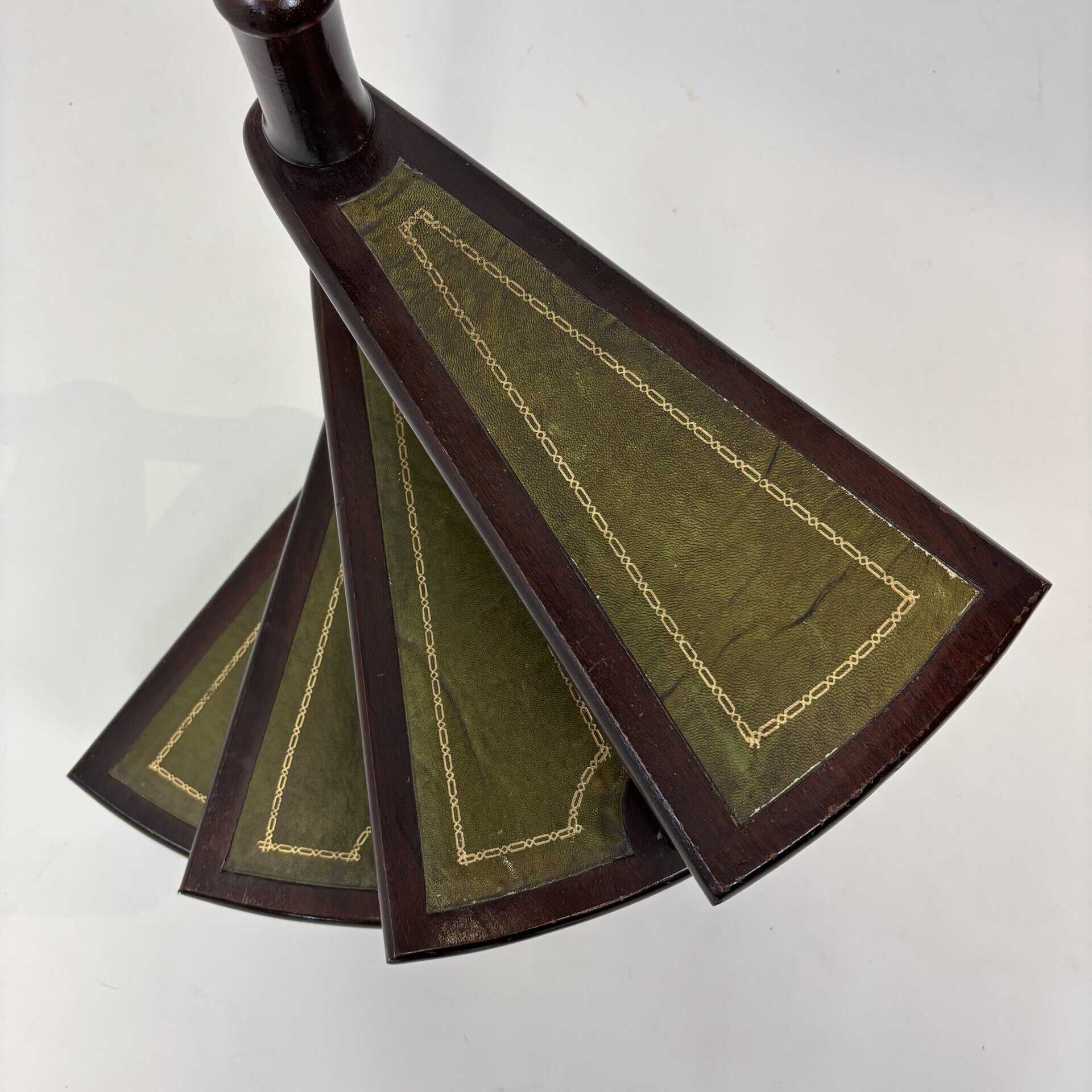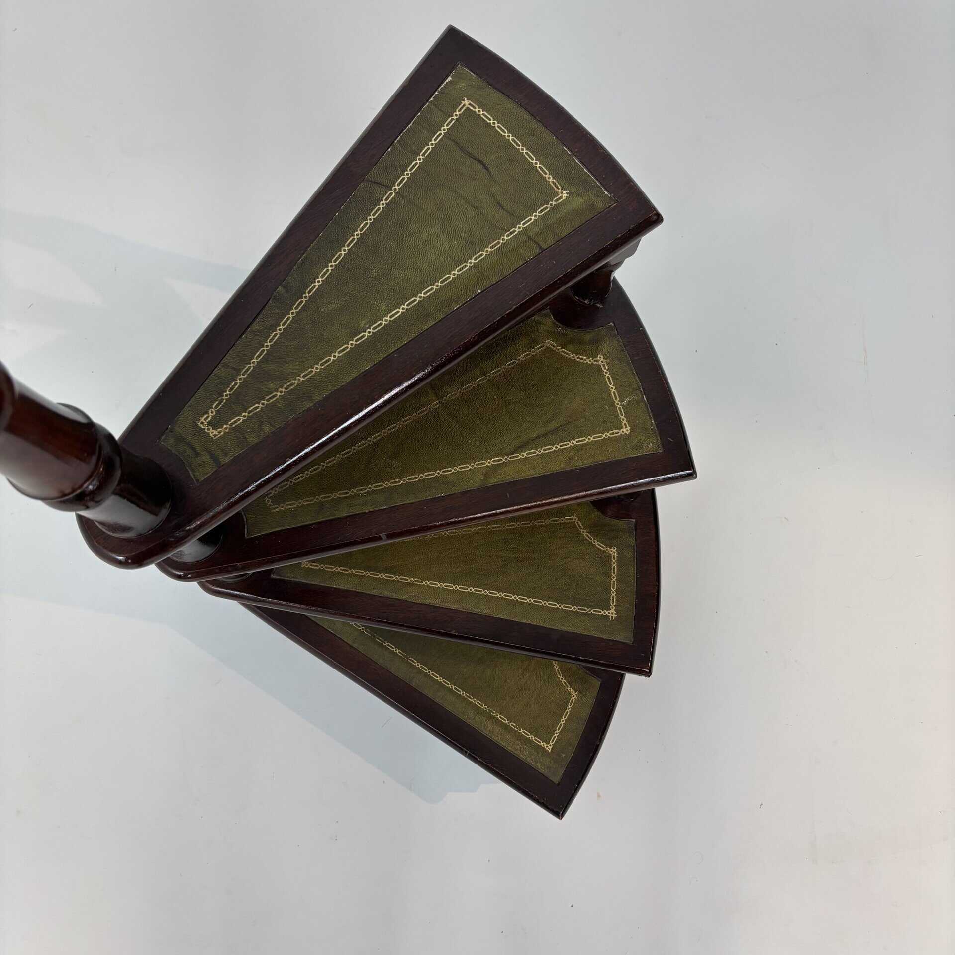 4 stairs with green leather inserts baring a golden design