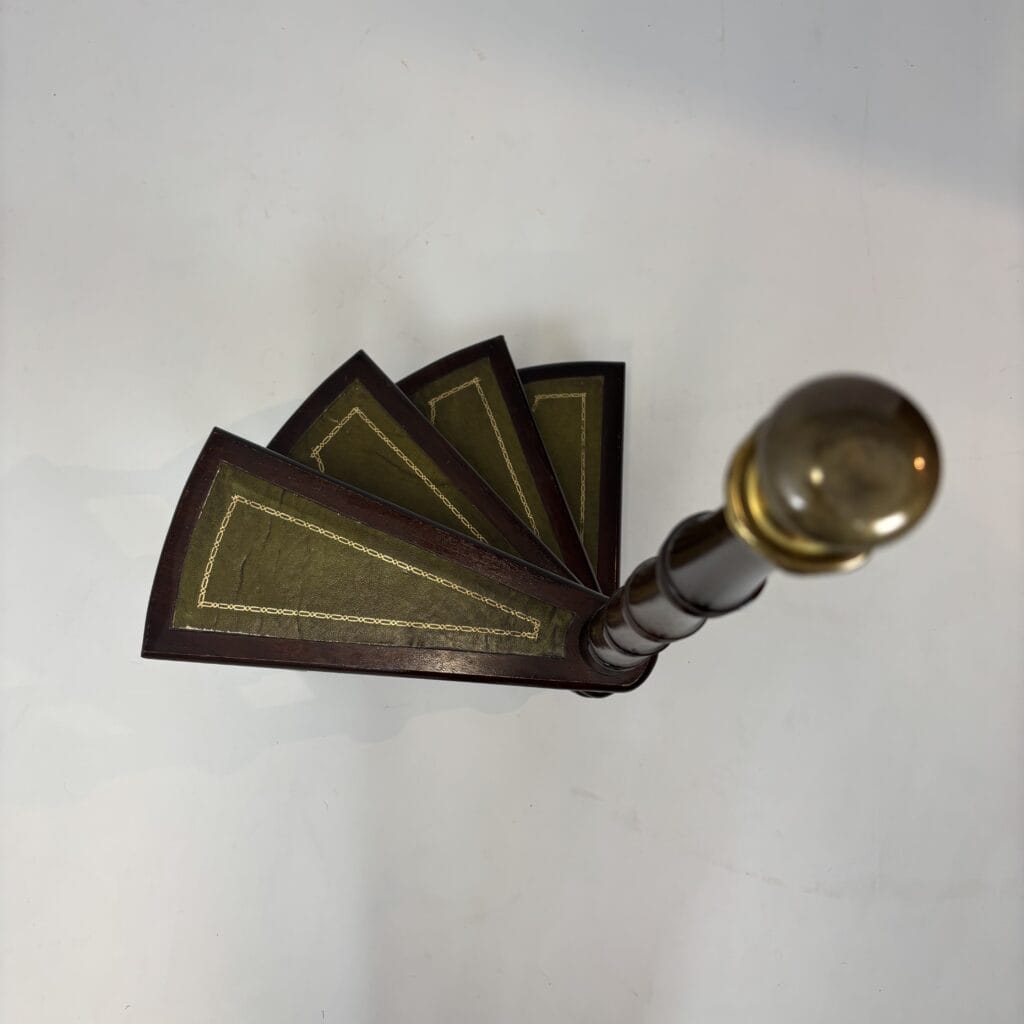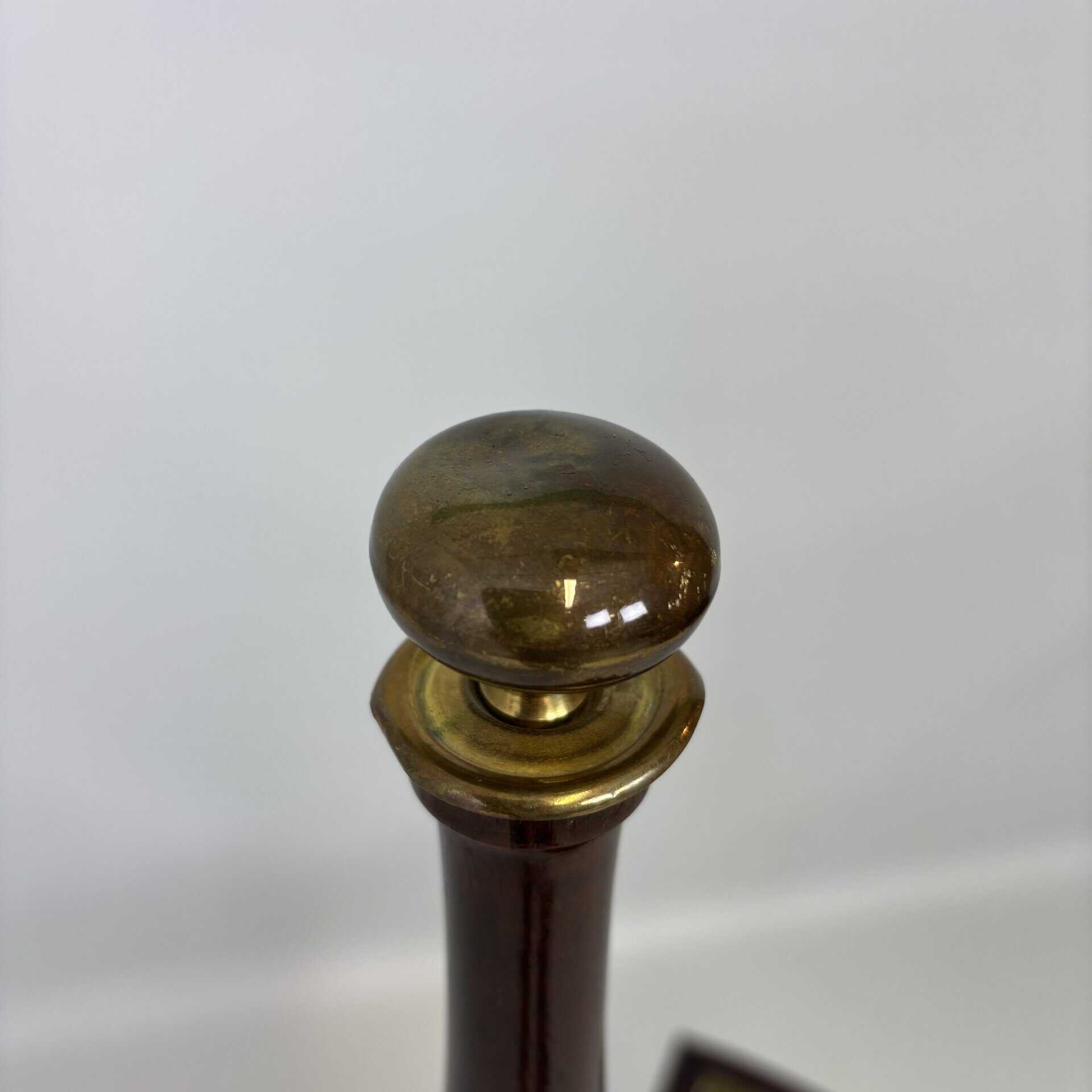 The central wood carved pole with a detailed knob in gold-coloured metal