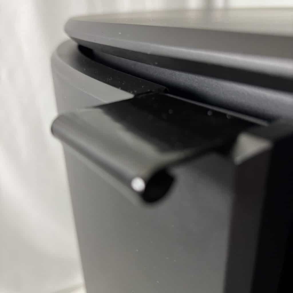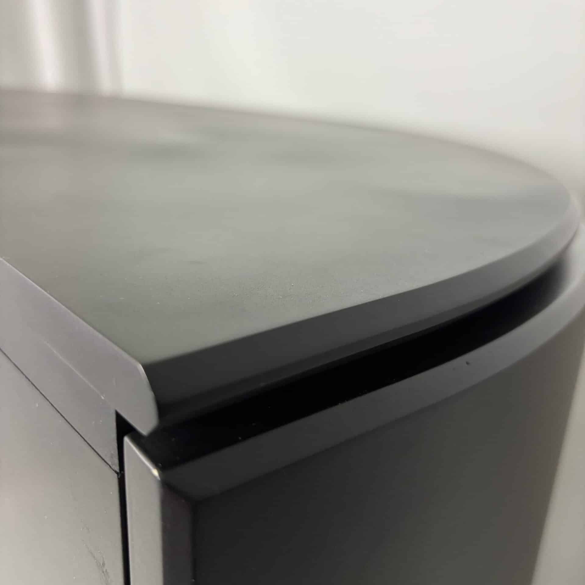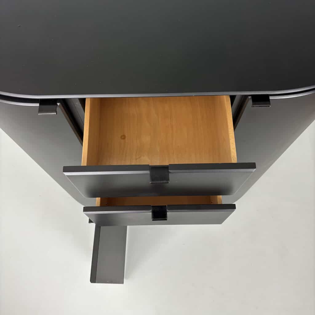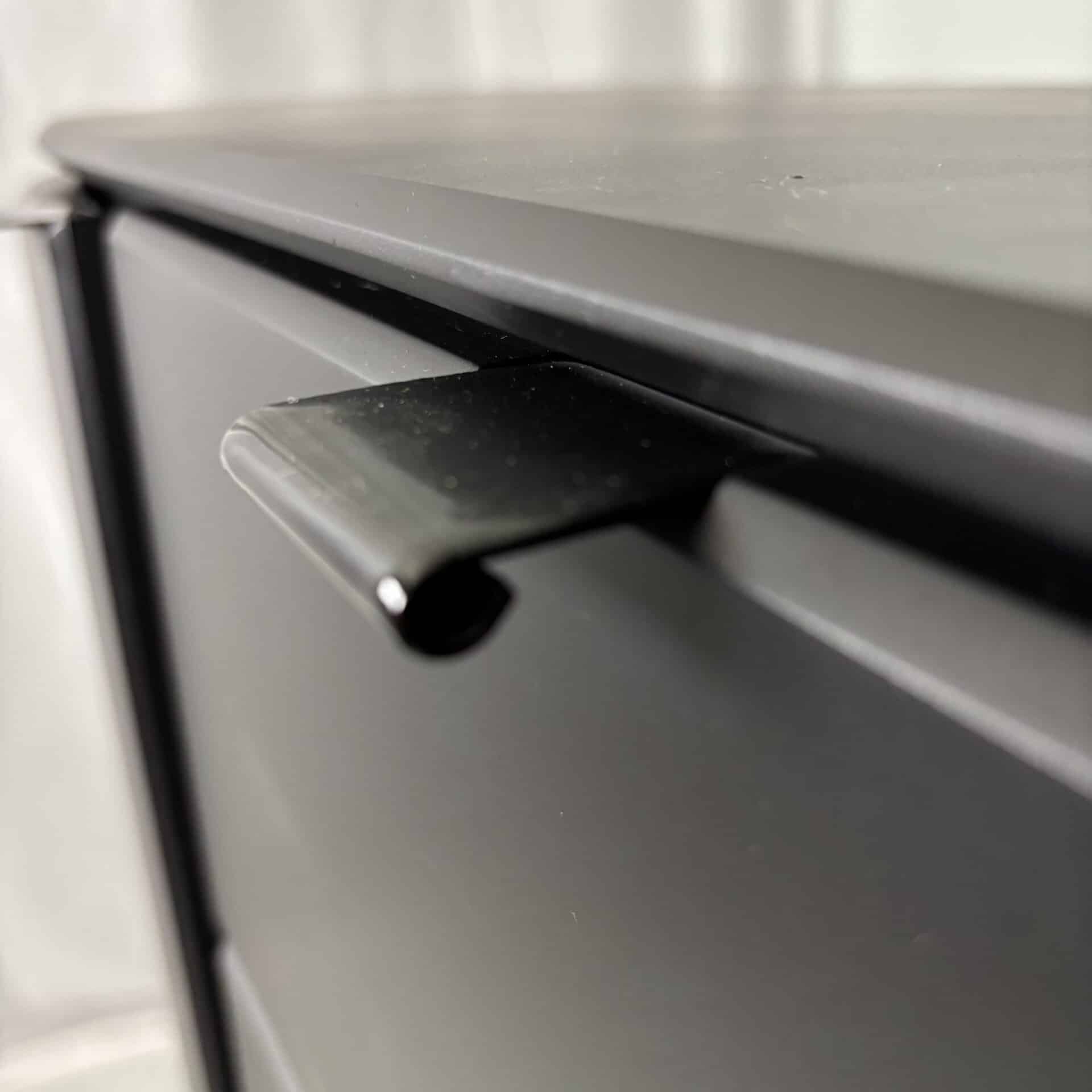 Cabinet in black lacquered MDF and minimal metal tab pulls